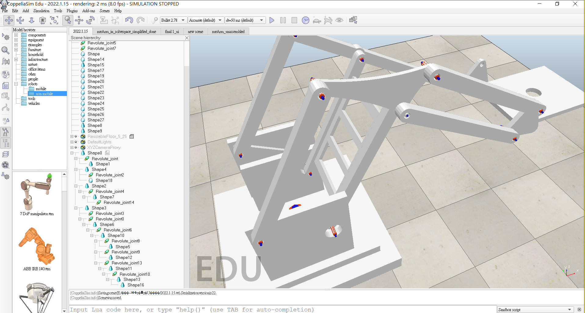 2.關於coppeliasim的組立目前只到約一半左右,以下附上照片現在狀況